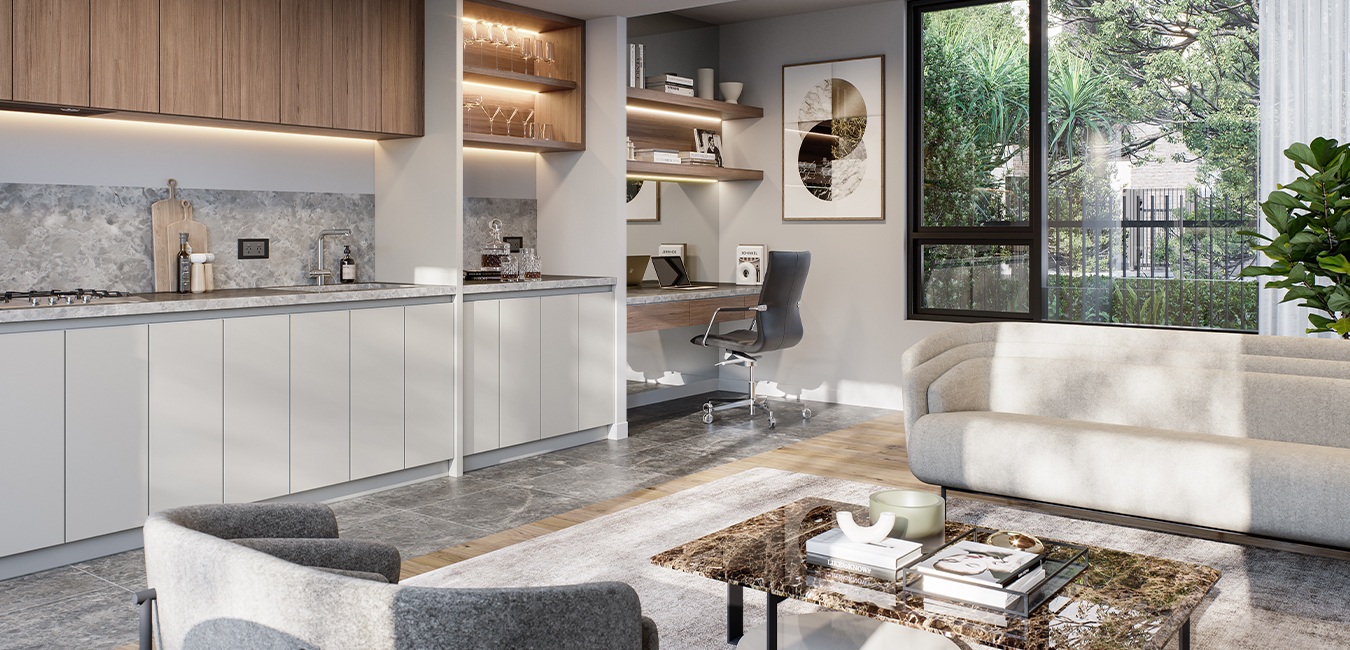 Seamless indoor-outdoor design affords you to embrace sun filled mornings, balmy evenings and inviting over friends, with your meticulously designed kitchen supporting your entertaining needs. A contemporary aesthetic sets the back drop to modern city living with timeless appeal.